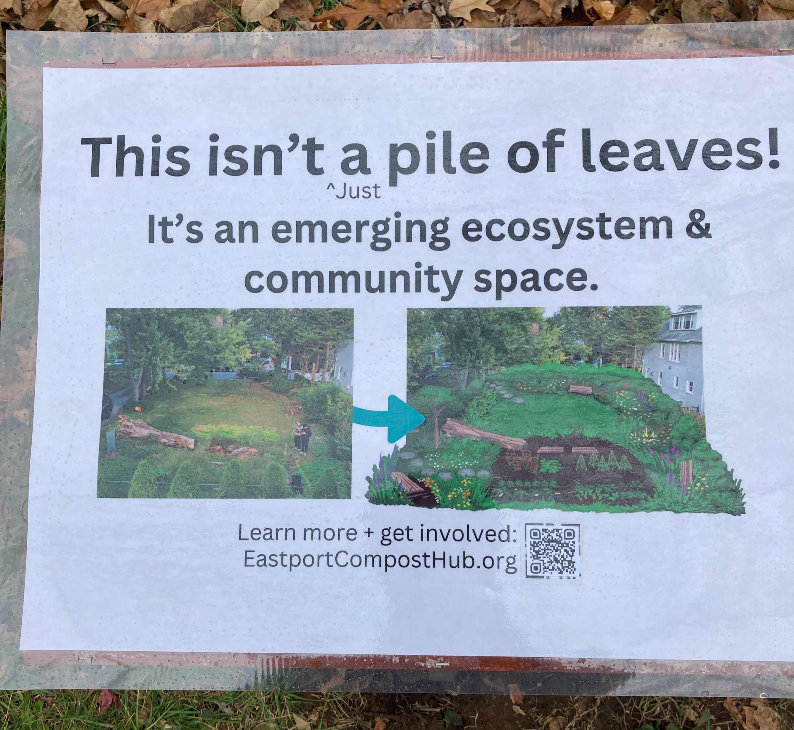 We had invited landscapers to drop off their leaves there instead of bringing them to the dump, to build organic soil matter and revitalize the ecosystem. This is obviously the opposite of what people generally do—most pay to have the leaves hauled away. I wanted to make sure I connected with the ECA (which seems like the HOA of Eastport) to communicate what I was doing and invite participation. We were also kicking off a community composting drop-off initiative in parallel, which I wanted to spread the word about. So I was there to present briefly to the meeting.