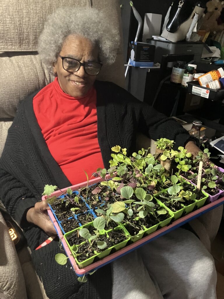 We are now gathering supplies to create a larger “walk-in” grow tent for indoor veggie and micro-green production so she can keep growing plants for herself and her community through the winter.