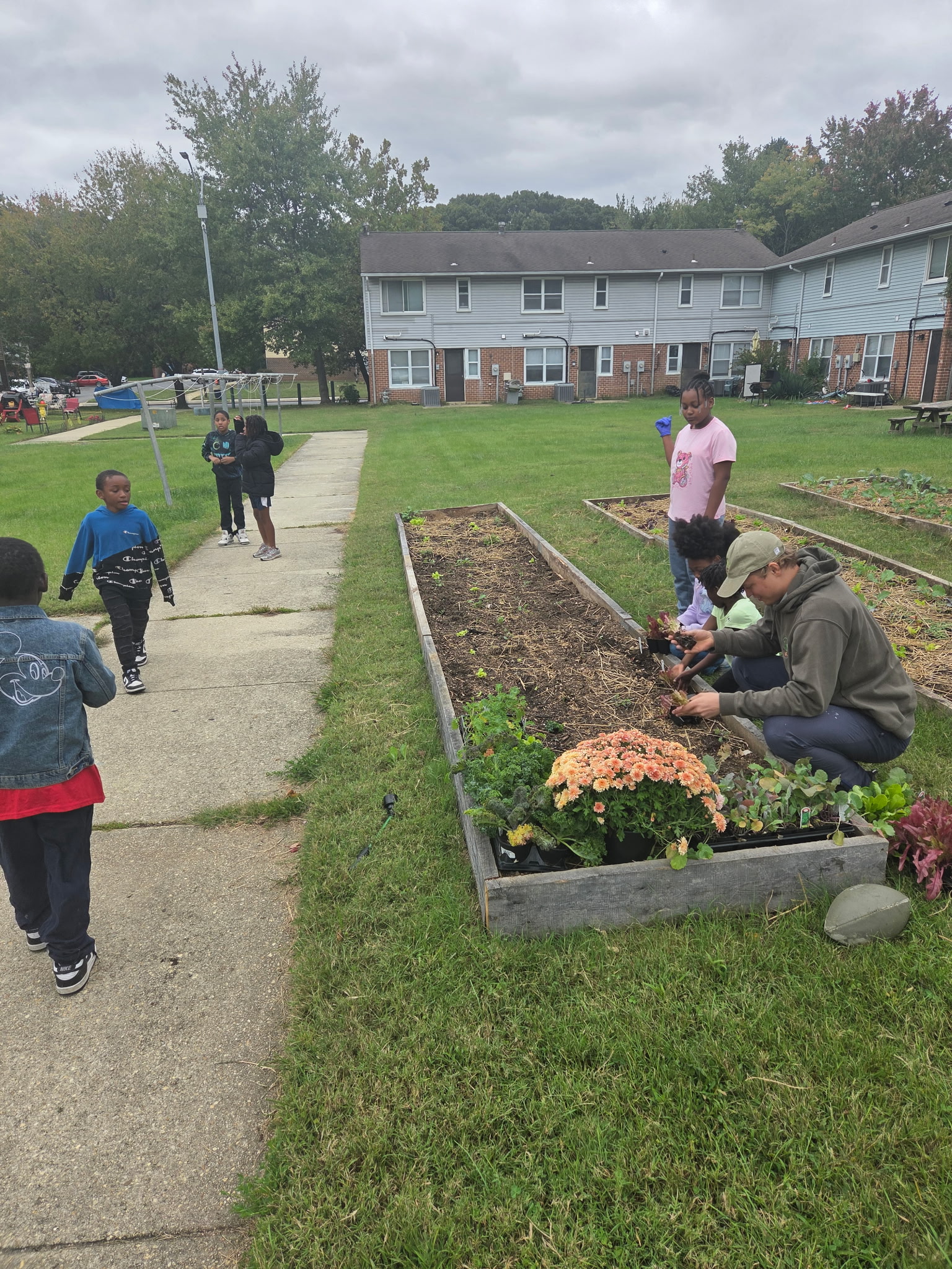 We started this garden in Fall 2025, in collaboration with Destiny Dale and Kiwone aka “Mr Fix-a-Flat” along with many great community members. The Garden currently has 300 square feet of raised bed space with plans for an additional 500. We hope to build a greenhouse on the adjacent concrete pad to create a community run plant nursery to produce veggies and flowers for Robinwood and wider Annapolis.
