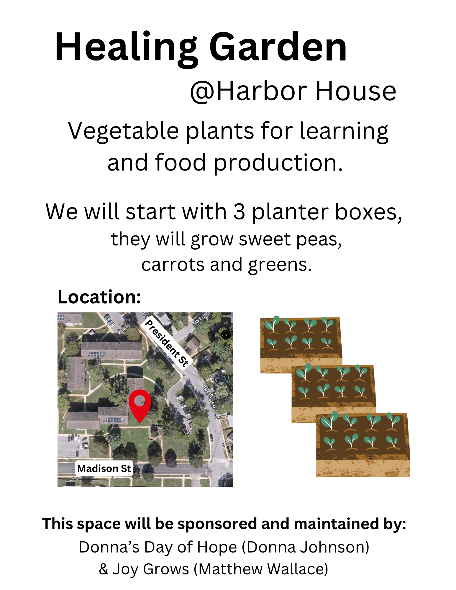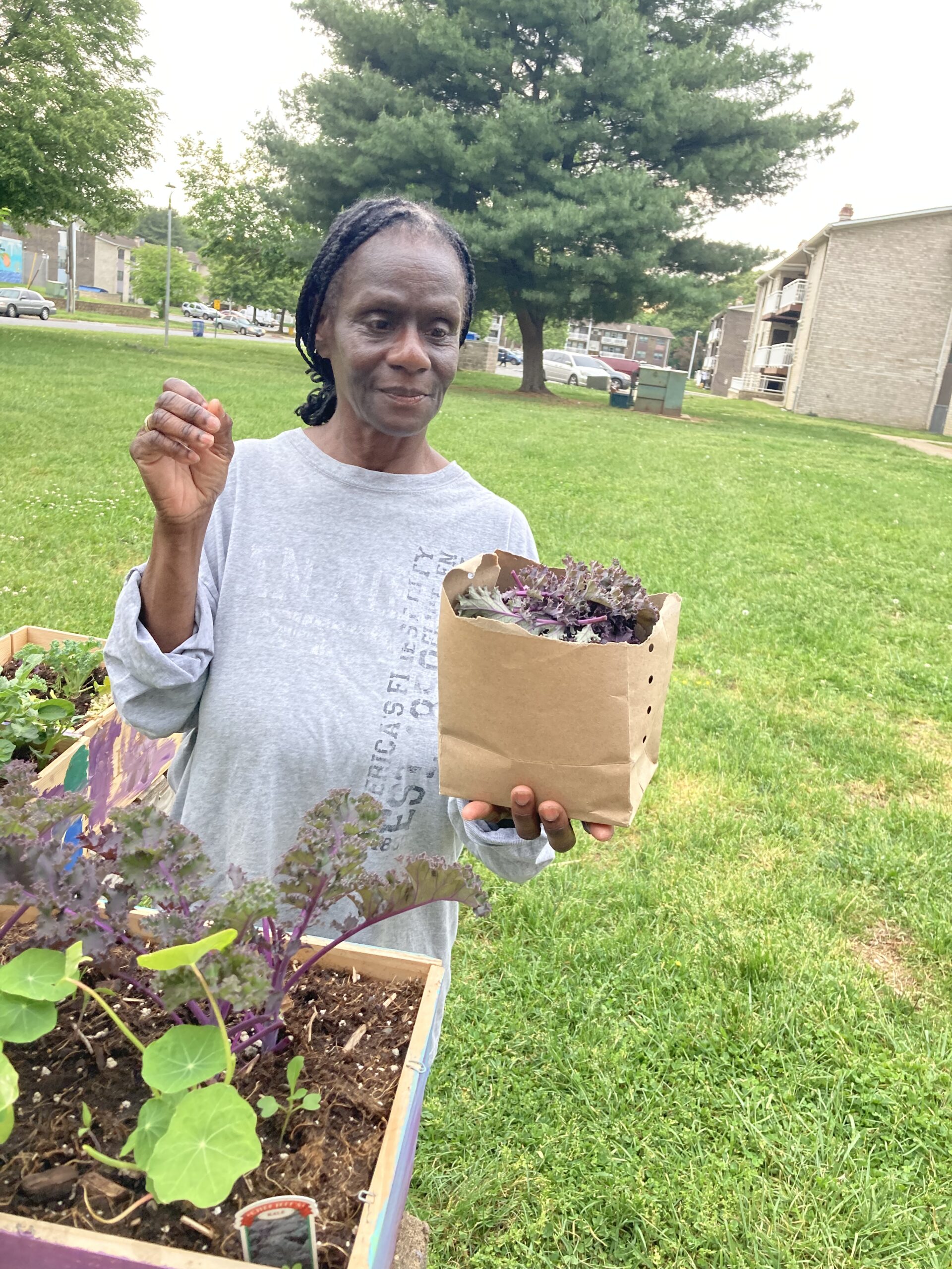 This beautiful little garden was created and is cultivated in collaboration with dedicated community advocate Donna Johnson. Donna aka “Peaches” works tirelessly to uplift her community through neighborhood events and her food and clothing distribution efforts. (Learn more about Donna here(coming soon!))